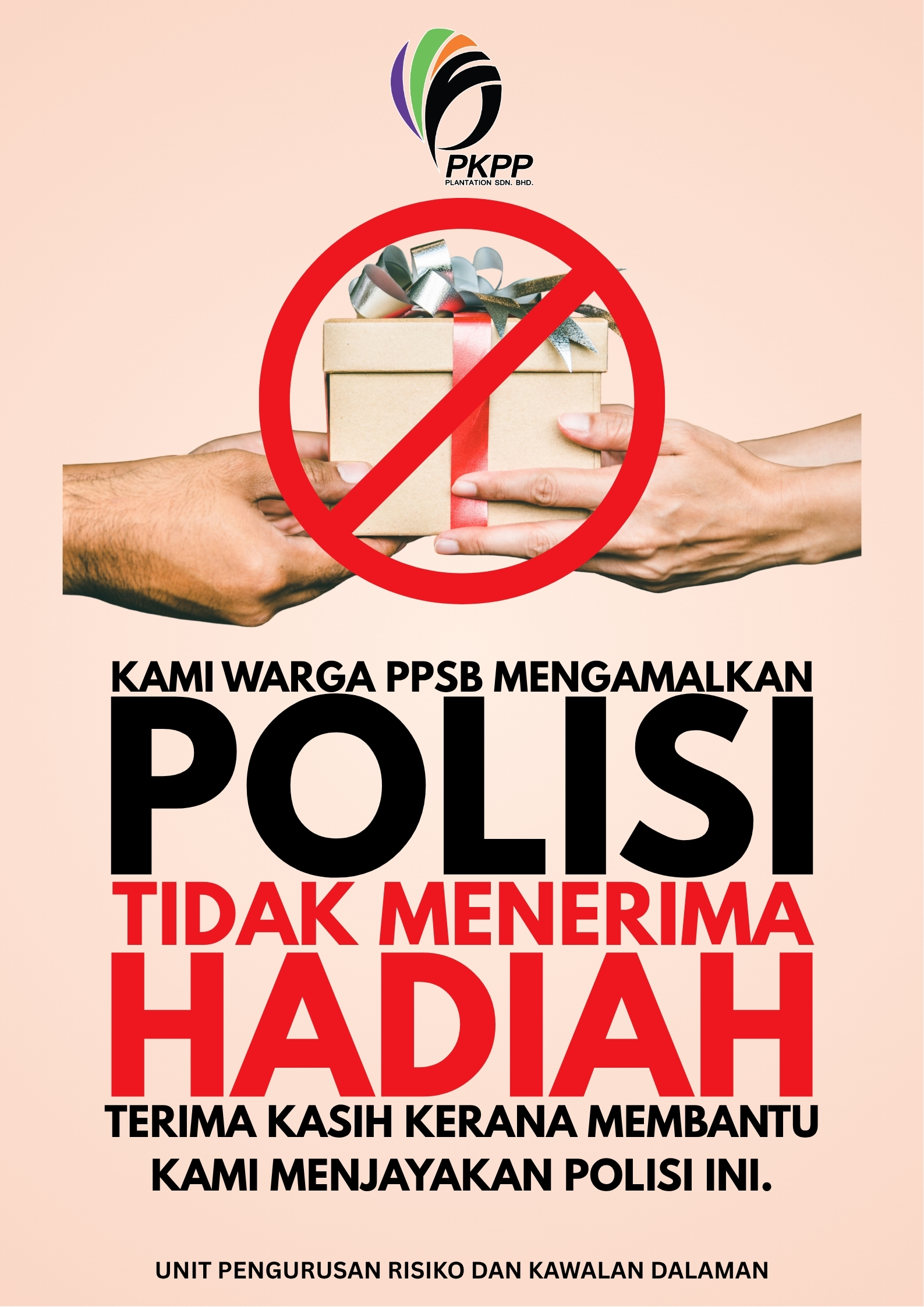 - Emelkan aduan ke alamat emel integriti@pkppplantation.com.my atau